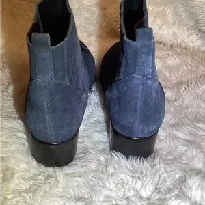 Stylish navy ankle boots. Suede finish. Comfortable block heel. Perfect for any occasion.