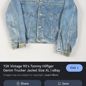 Stylish light blue denim jacket by Tommy Hilfiger. Features a contrasting tan collar. Perfect for casual wear. Small spots early 90s demon coat large
