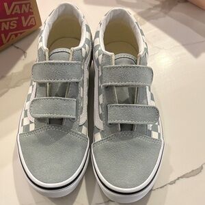 The Old Skool V Suede canvas reimagines our iconic Sidestripe shoe by swapping traditional laces for triple hook-and-loop closures. Made with signature suede and canvas uppers, this low top style maintains its classic appeal while providing an easy, secure fit that will keep you comfortable all day.