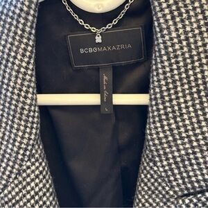 BCBG MaxAzria black and white houndstooth wool blend coat sz L
