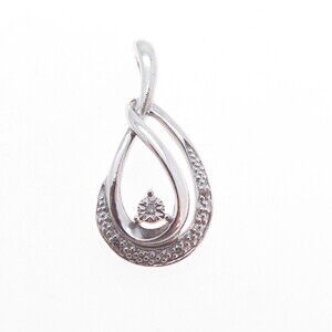 925 Sterling Silver Real Round-Cut Diamond Teardrop Charm Pendant