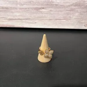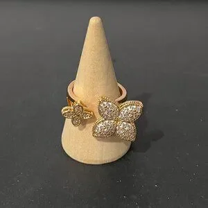 Park Lane Hollywood ring size 7. Iconic designer style quatrefoil symbol high polished gold finish micro pave czs.
