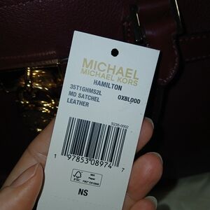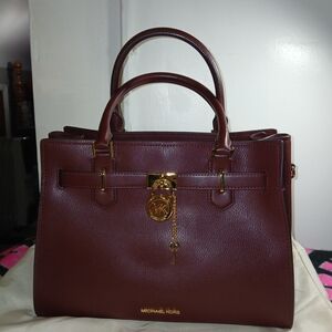 NWOT Michael Kors Oxblood Hamilton Satchel Crossbody Strap Gold Hardware