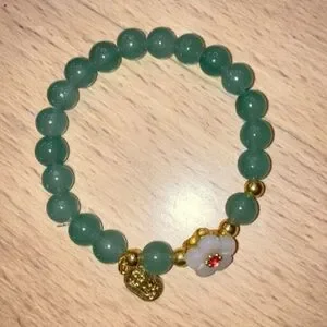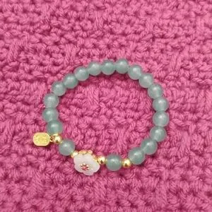 Jade Green Aventurine Bead Stretch Bracelet with Flower Accent NEW