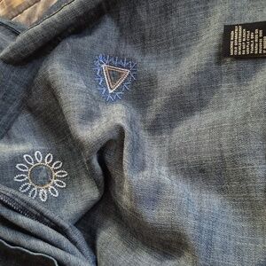 DG2 Diane Gilman chambray short sleeve split with pockets embroidered denim (cotton blend) dress