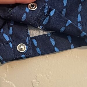 Adorable Carter's two-piece set for baby boys featuring a dark blue shortall with light blue stitched stripes and a matching solid blue t-shirt. Size 0-3 months. Perfect for playdates, casual outings, or family gatherings. The shortall has convenient button closures and the soft cotton blend ensures comfort for active little ones. A stylish and practical choice for warm weather adventures!