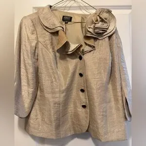 Adrianna Papell Gold Jacket Blazer top with Floral Detail