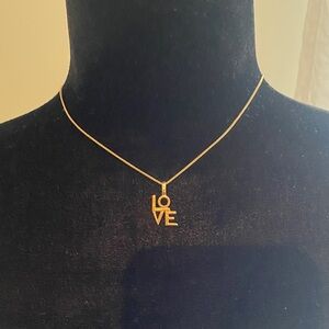 Authentic Chic gold necklace with 'LOVE' charm. Includes branded pouch and box.