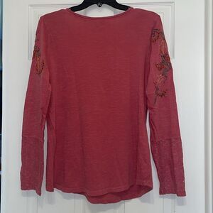Sundance Mauve Long Sleeved Floral Embroidered and Lace Top