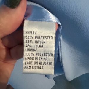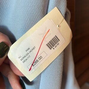 Chic sky blue blazer by Patty Kim. Features striking gold buttons. Perfect for a polished look.