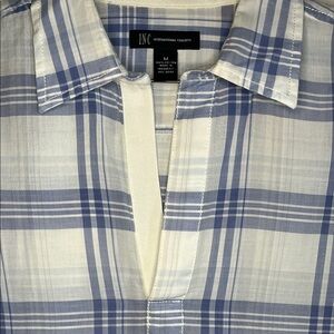 INC International Concepts Light Blue Plaid Casual Shirt