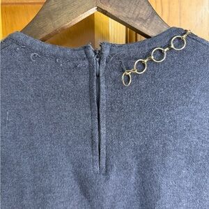 ❀ Zara short sleeve knit top with chain details around the neck. In the color grey or charcoal. The gold chain is supposed to be all the way around, as you see in the photo, some of it came off.. I personally think it still looks very cool and unique with how it sets on the neck!