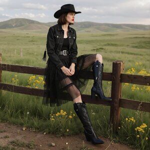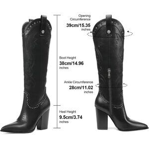 Heel Height: The heel height of the cowboy boots is about 9.5cm/3.74".