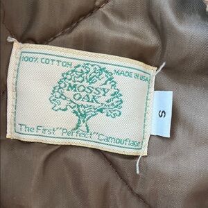 Durable vintage Mossy Oak jacket. Features classic camouflage design.