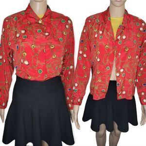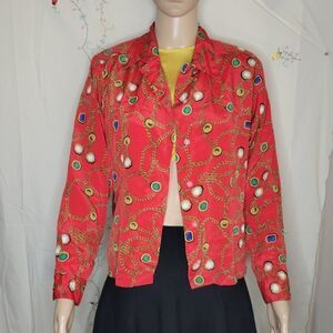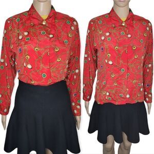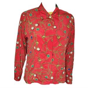 HP🎀Josephine Petites long sleeve red chain pattern button down shirt.