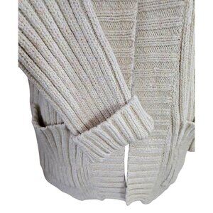 Free People Oversized Beige Ribbed heavy weight Knit Cardigan Sweater fishermen