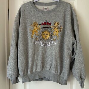 Chic gray sweatshirt with a regal crest design. Ideal for everyday style.