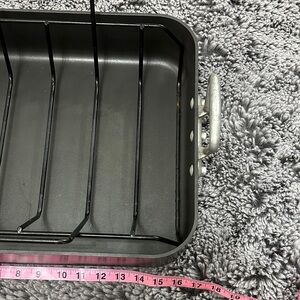 Enhance your kitchen with this durable black roasting pan. Features a sturdy rack for optimal roasting. Ideal for delicious meals.
