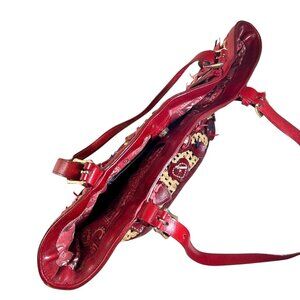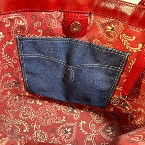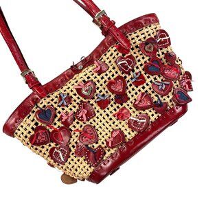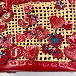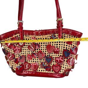Brighton Wicker Leather Purse Red Hearts Applique Shoulder Handbag Handled Tote