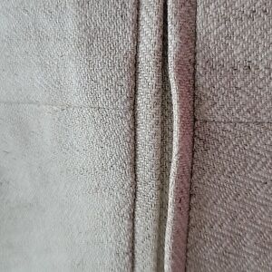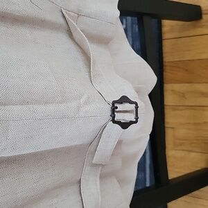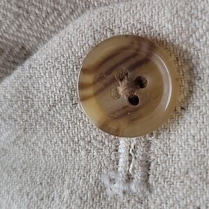 Size 18. Herringbone pattern material. Light Taupe/ Pebble in color per manufacturer description. Button closure front with tortoise-style buttons. Bronze colored buckle on the back belt. Fully lined.