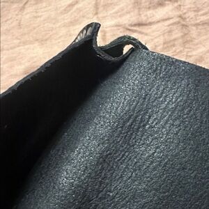 Stylish black leather crossbody bag with unique detailing. Handmade in Alberta. Exquisite craftsmanship, thick heavy leather. Adjustable strap.