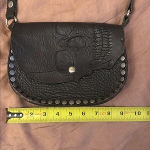 Skull Black Leather Crossbody Bag