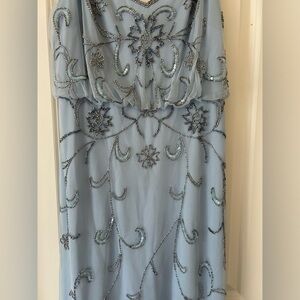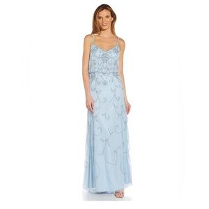 Adrianna Papell Blouson Light Blue Embellished Gown Size 6