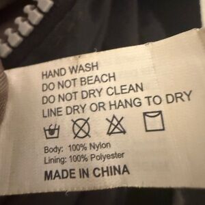 • Material (per tag): Body 100% nylon / Lining 100% polyester