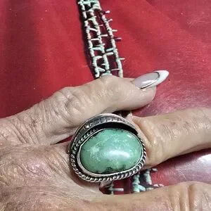 Identification and Value: Many vintage Native American pieces are unsigned. Similar rings with high-grade natural green stones can range widely in value, typically from approximately $100 to over $600.