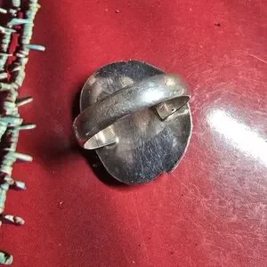 Style and Craftsmanship: The ring is designed in a traditional Southwestern style, Navajo, known for its substantial silverwork and hand-stamped designs. The bezel setting and decorative wirework are typical of vintage, handmade pieces.