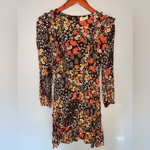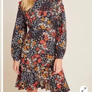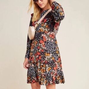Anthropologie dress, Kachel dress, floral dress, boho dress, ruffle dress, long sleeve dress, fall dress, cottagecore, feminine dress, tiered dress, size 4 dress, black floral dress