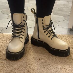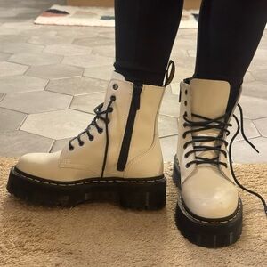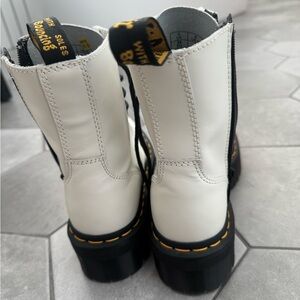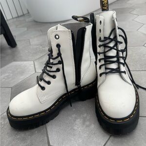 Classic white leather with contrasting black laces. Sturdy and stylish design. Excellent condition - worn only once.