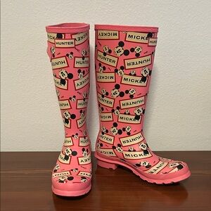 Hunter x Mickey Mouse Rain Boots | Big Kids US 5 | Pink