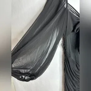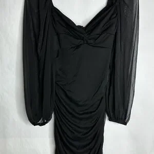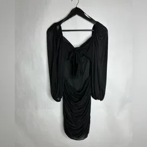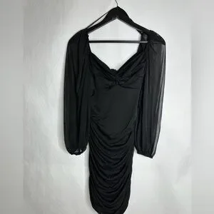 B Darlin Black Ruched Mesh Long Sleeve Bodycon Mini Cocktail Dress Size XL (Juniors Sizing)