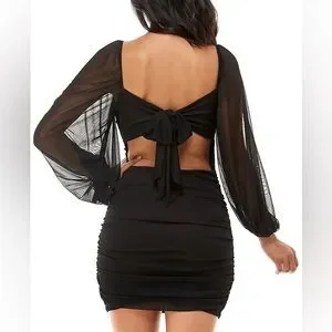 B Darlin Black Ruched Mesh Long Sleeve Bodycon Cut Out Mini Dress Size XL