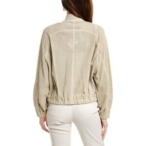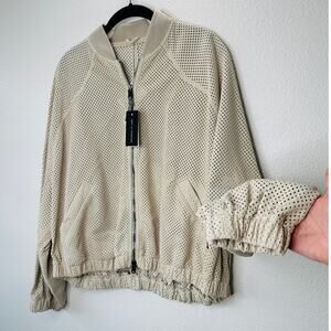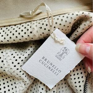 NWT Brunello Cucinelli Tan Cream Laser Cut 100% Leather Bomber Jacket 48 / XL