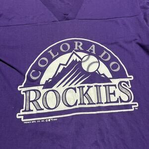 Vintage 90s Colorado Rockies Purple MLB V-Neck T-Shirt