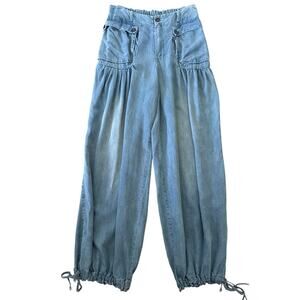 Oli & Hali Pants Large Wide Leg ankle ties Chambray Tencel waist 30" medium