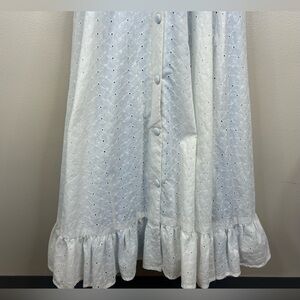 Vintage Handmade White Eyelet Maxi Prairie Dress Ruffles Button up back womens S