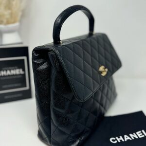 💎💯Authentic CHANEL Black Caviar Quilted Top Handle Kelly💎