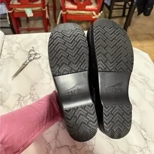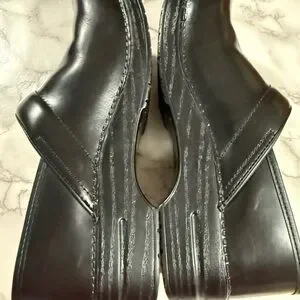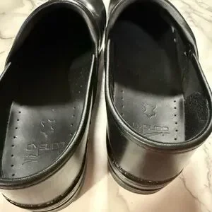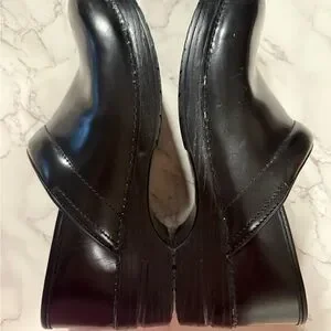 Sleek black leather clogs Comfortable and stylish. Ideal for any occasion. These men's clogs are size around 11 1/2 to 12 men's USA size. Please no low balling the price is a steal they are great shoes!!!!