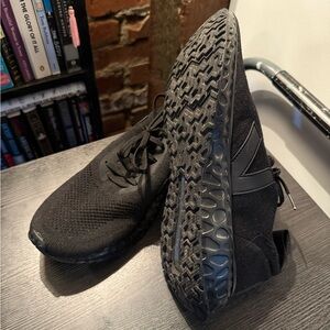 Slightly used, excellent condition, full night black ninja sneaks, v-knit mesh. Men’s US 12.5, EU 46