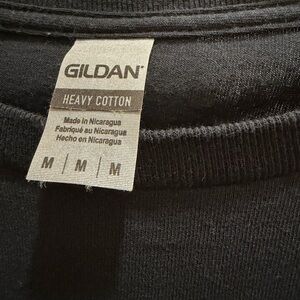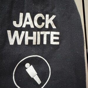Comfortable black long sleeve with striking blue design. Ideal for everyday wear. Jack White Concert Shirt - tiny bleach spots on one sleeve shown in picture