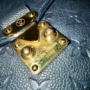 Chic Louis Vuitton crossbody with iconic monogram. Black leather with gold-tone hardware. Perfect for stylish outings. Purchased in 2019, like new condition. The front gold clasp has some superficial scratches and one imperfection on the bag shown (scuff, not a tear in the leather).