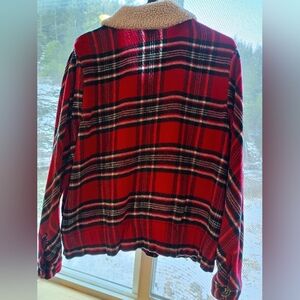 Cozy plaid jacket with soft sherpa trim. Ideal for cool weather. good condition and soft. smoke free pet friendly home