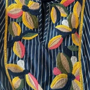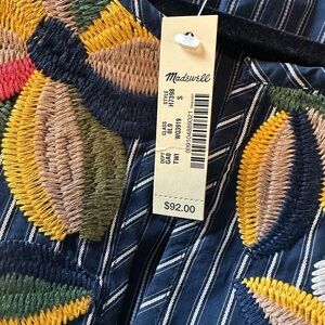 Madewell Navy Striped Blouse with Colorful Embroidery