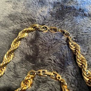 This stunning gold-tone jewelry set adds a touch of elegance to any outfit. Perfect for special occasions or everyday wear. This is a retired Premier Jewelry 18 inch rope necklace and bracelet.