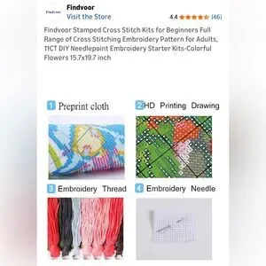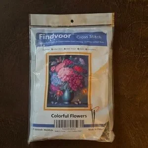 NWT Findvoor Cross Stitch "Colorful Flowers" Kit 11CT 3 Strand 40x59cm