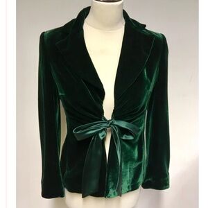 Elegant Green Velvet Suit jacket pants sexy NYC winter NYE Christmas chic bow