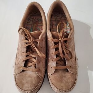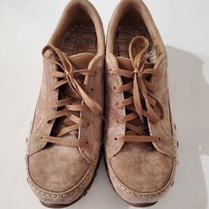 SKECHERS Women 9 Brown Suede Relaxed Fit Air Cooled 44703 Comfort Shoes Lace Up